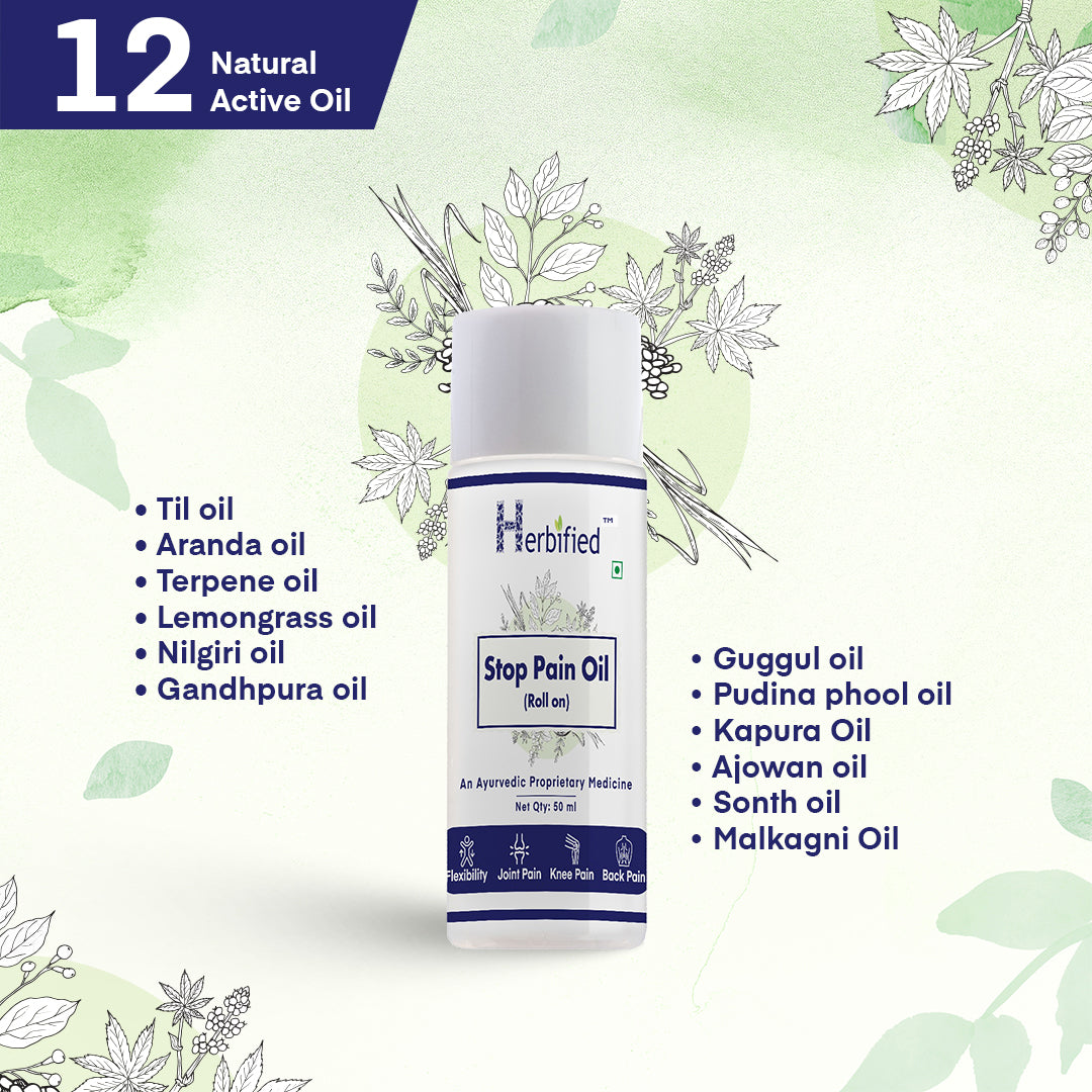 Herbified Ayurvedic Stop Pain Relief Oil Roll 50 ml For Joint Pain Relief and Relaxation-50 ml (Pack of 2)