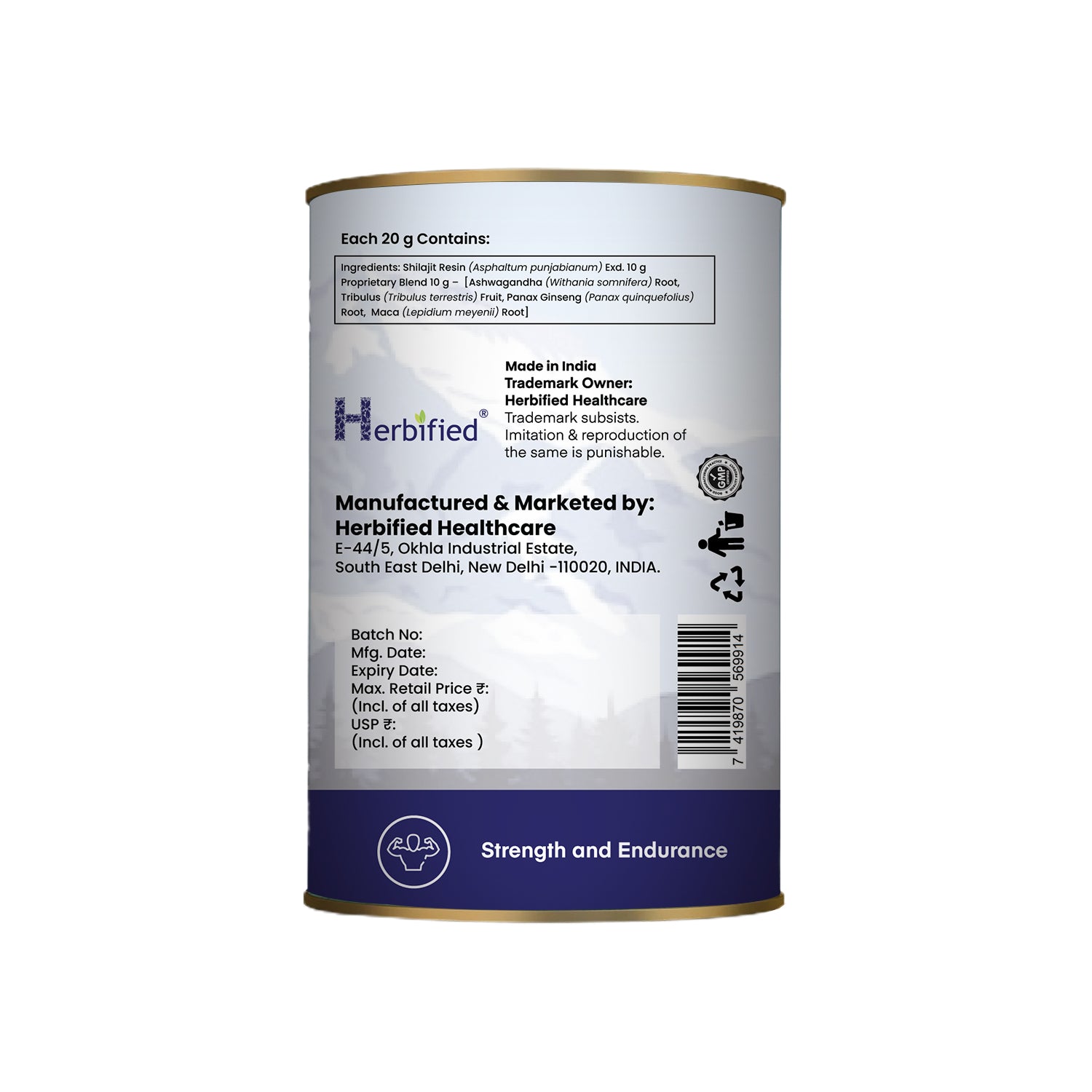 Herbified Shilajit Resin Infused with Men Vitality Herbal Blend is an formulation that helps improve strength, stamina and power. It helps in relieving general weakness and improves health & vigour. It contains antioxidants & neuroprotective effects, that helps in boost muscle, it also helps reduce stress and relaxes the mind. The formulation has the goodness of herbs such as Ashwagandha , Tribulus, Panax Ginseng and Maca Root revitalize and energize, providing a natural solution for men seeking enhanced performance and overall well-being.