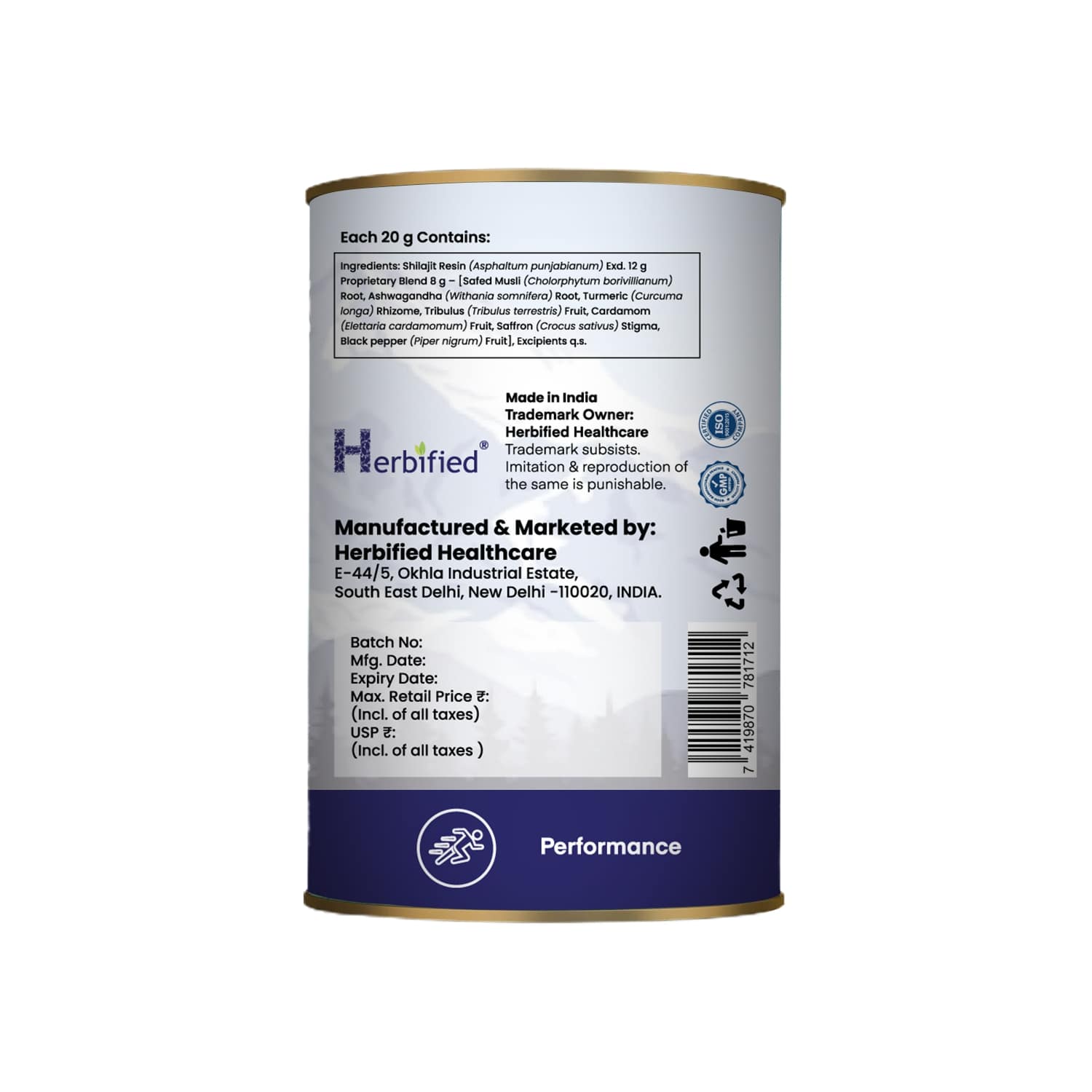Herbified Shilajit Resin with Super Herbal Blend is perfect blend of ingredients which can help you improve your mood, reduce stress, and enhance your performance. It improves energy, strengthens immunity, fights inflammation, and adds vigor and vitality for a healthier you. It's nature's power of antioxidants support overall well- being.